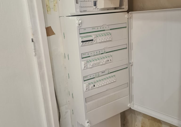 Parti d'un tableau ancien pour arriver à du neuf, du tirage de câble soigné et super professionnel sur les conseils et la réalisation. Propre et rapide. Le chantier était pas facile car un ancien câblage très aléatoire il a su avec patience tout retrouver. Bref je conseil autant l'homme que le professionnel. Les yeux fermé vous pouvez y aller